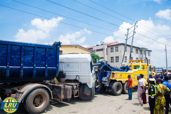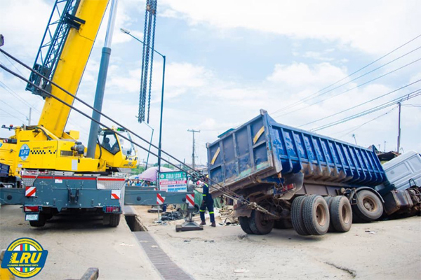 It took the combined effort of LRU, LASTMA, and men of the Nigeria Police Force to salvage the truck from the crash scene.