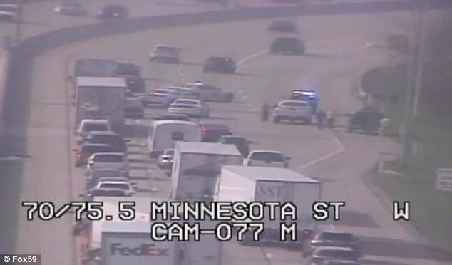 State police said drivers clamored to pick up cash on an interstate in Indianapolis after the back doors of a Brinks armored truck swung open, causing hundreds of thousands of dollars to fly out.