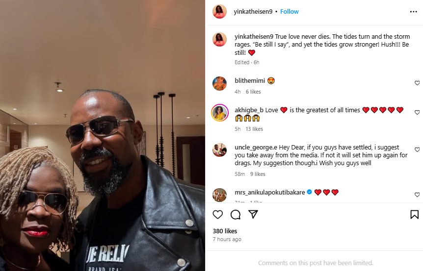 Yinka shared a photo of herself and Linc today with a caption which suggested that were back together as lovers.