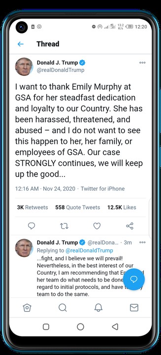 I want to thank Emily Murphy at GSA for her steadfast dedication and loyalty to our Country. She has been harassed, threatened, and abused – and I do not want to see this happen to her, her family, or employees of GSA.
