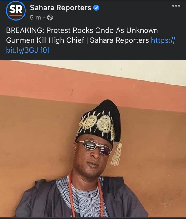 SaharaReporters gathered that Elerewe was murdered in the community while returning from where he and some other chiefs had gone to settle a dispute on the order of the Olowo Of Owo, Oba Ajibade Ogunoye.