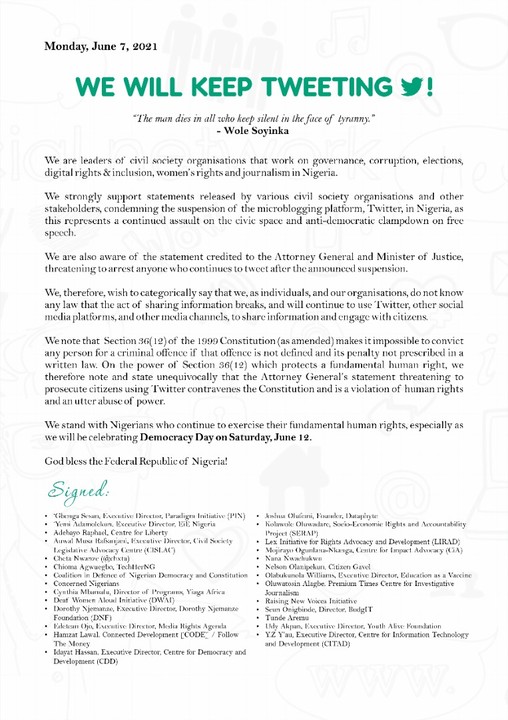 Twitter Ban: EIE, Other Civil Society Groups Say They Will Defy Directive