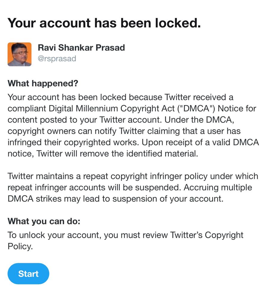 Friends! Something highly peculiar happened today. Twitter denied access to my account for almost an hour on the alleged ground that there was a violation of the Digital Millennium Copyright Act of the USA and subsequently they allowed me to access the account.