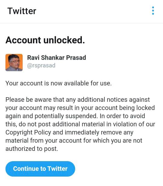 It is apparent that my statements calling out the high handedness and arbitrary actions of Twitter, particularly sharing the clips of my interviews to TV channels and its powerful impact, have clearly ruffled its feathers.