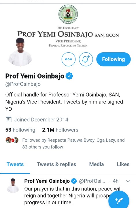 Nigerians on the social media platform had raised alarm over supposed tampering with the account of Prof. Osinbajo with many demanding that Twitter provide answers as to why Vice President Osinbajo’s account was unverified.