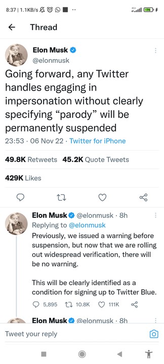 Going forward, any Twitter handles engaging in impersonation without clearly specifying “parody” will be permanently suspended