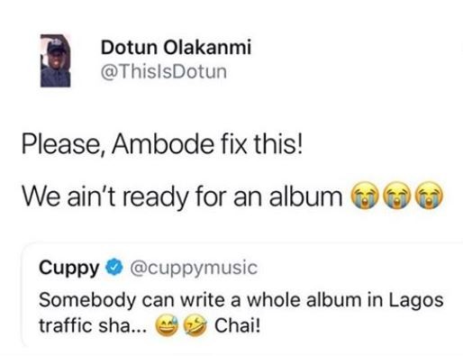 Twitter User Begs Governor Ambode To Intercede As DJ Cuppy Hints At Writing An Album Inside Lagos Traffic - 9jaflaver