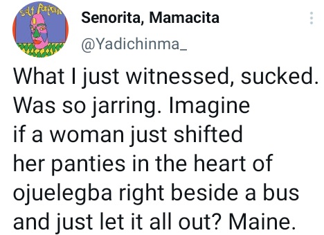 “On a road trip in Accra, some Nigerian men came down to take a piss by a bush and got arrested by the Ghanaian police.” she tweeted on Friday, January 6.