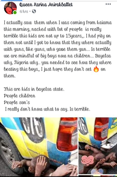 Two Armed Robbers Below 15 Caught In Bayelsa, Face Mob Action (Disturbing)