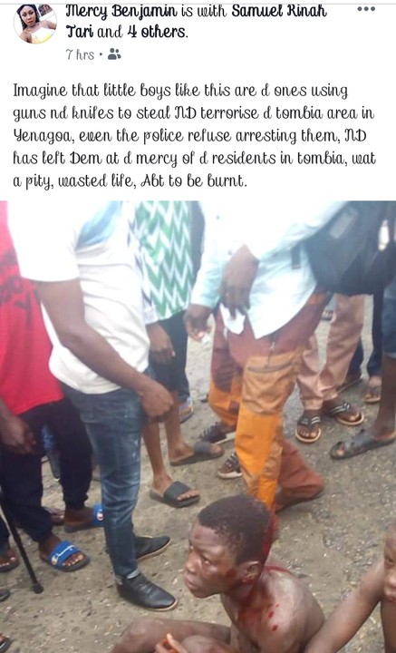 Two Armed Robbers Below 15 Caught In Bayelsa, Face Mob Action (Disturbing) - 9jaflaver