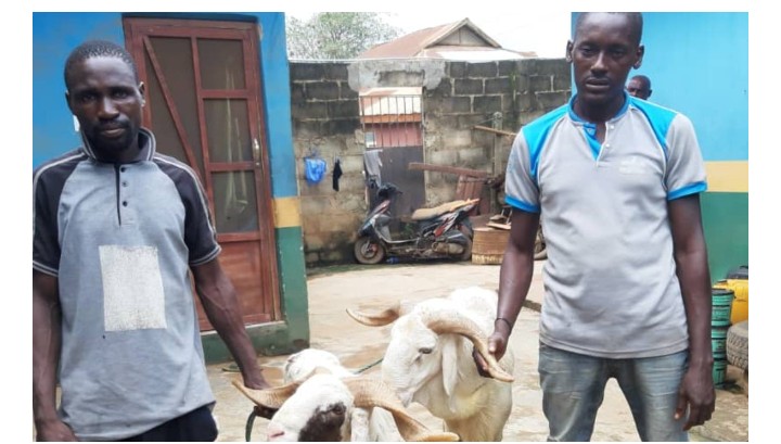 The Ogun state police command has paraded two men arrested for stealing rams in Ogijo area of the state. The suspects identified as Shina Kolawole and Taoreed Oladimeji, were arrested at Mayor bus stop during a routine patrol led by the DPO of Ogijo Division, CSP Suleman Baba Muhammed. They were conveying the rams to an undisclosed location with a bus that had the registration number, LSD 381 XN. “On interrogation, the two suspects were unable to give satisfactory account of how they came about the rams, hence they were arrested and taken to the station.“On further questioning, they confessed that the rams were actually stolen,” Abimbola Oyeyemi, Ogun Police Spokesperson, said in a statement.Owners of the ram have been contacted and they are expected to appear at the police station with evidence of ownership. The two suspects on the other hand will be charged to court after investigation has been concluded.