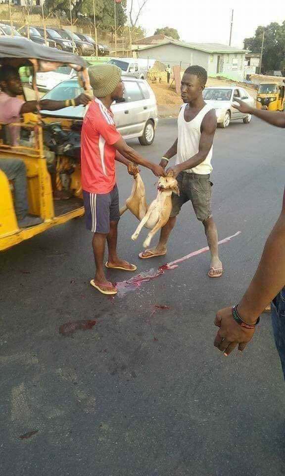 Two boys were seen fighting over who will cook and eat a dog that was hit by a vehicle. Gistvic Reports.