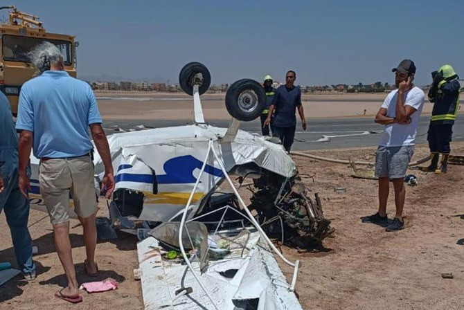 The two-seater private tour plane, registered to Airman Sky Sports, was on a test flight when it crashed, Egypt’s civil aviation ministry spokesman Bassem Abdel Karim said.