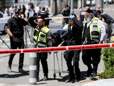 Israel’s Magen David Adom ambulance service said two men in their 20s had been injured in the attack, one seriously and one lightly.
