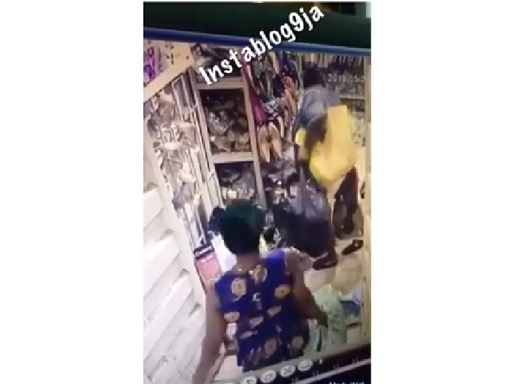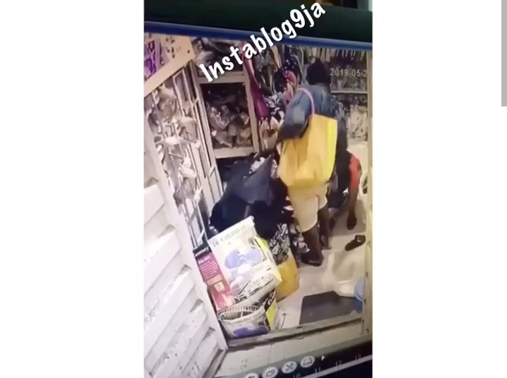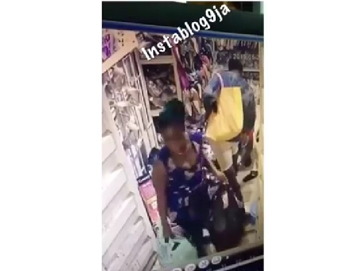 Here is the shocking moment two ladies stole N1m worth of goods at a shop in Idumota, Lagos.