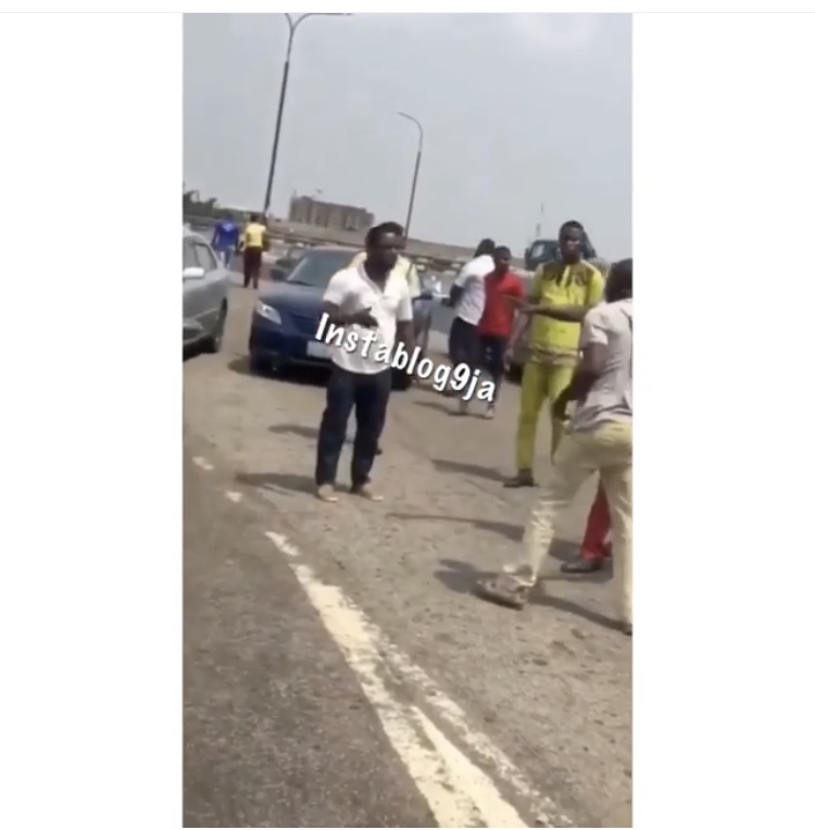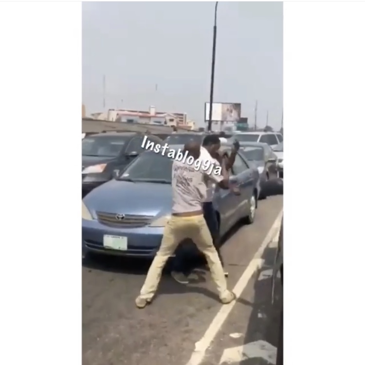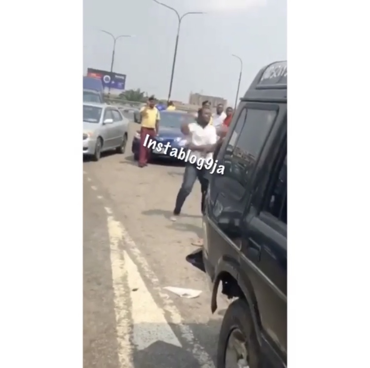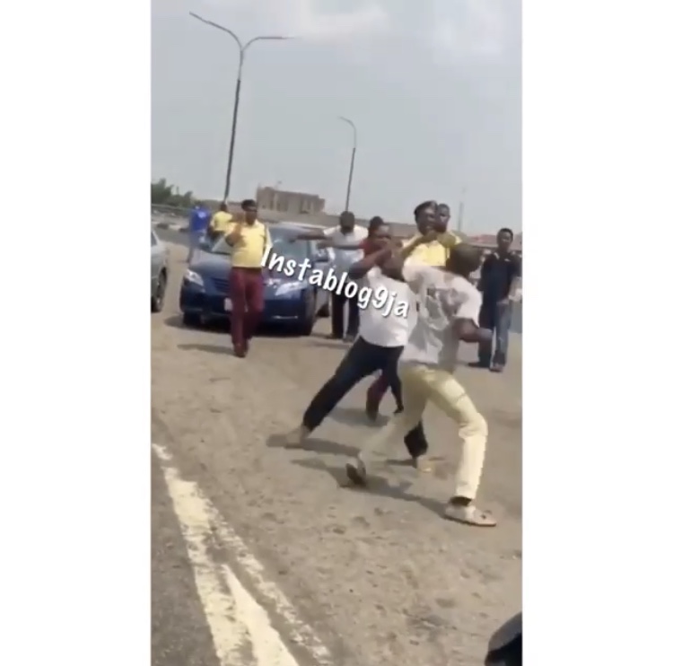 Two men seen fighting after #LASTMA officials caused a traffic buildup today, near the 3rd mainland bridge in Lagos