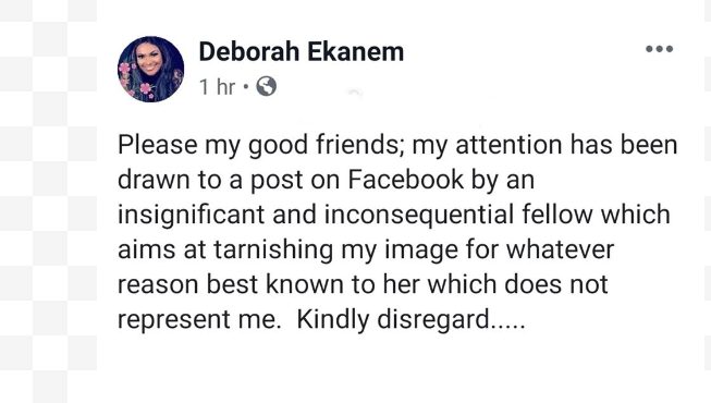 Nov 18A Nigerian lady has taken to Facebook to accuse another lady of trying to ‘steal’ her man.Mary Isaiah Edidem who fired the first shot, warned Deborah Ekanem to stay away from her man as she (Deborah) previously left him for his Prophet. She also alleged that Deborah has been inviting her boyfriend to a hotel.