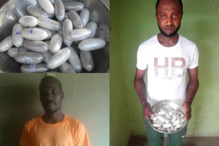 A trans-border trafficker, Emeka Okoro and another drug dealer, Ibrahim Bello were arrested by operatives of the National Drug Law Enforcement Agency, NDLEA, with cocaine weighing 1.1kilogramme, which has a street value of N264million.