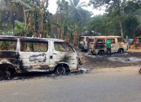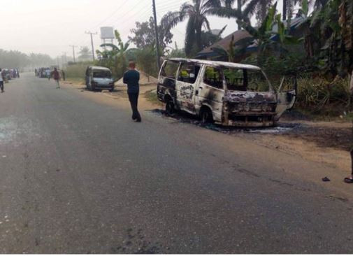 The incident which resulted in the burning of many vehicles was said to have occurred after some thugs invaded the office where party agents and supporters were waiting for the delivery of sensitive materials from Uyo, the Akwa Ibom State capital before the election was postponed.