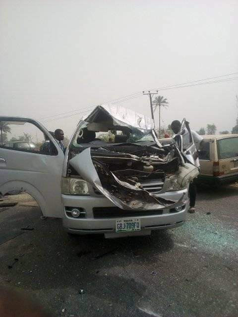 Twenty passengers, including two pregnant women and the driver escaped death by whiskers on Saturday, when a truck rammed into a bus in Delta state.