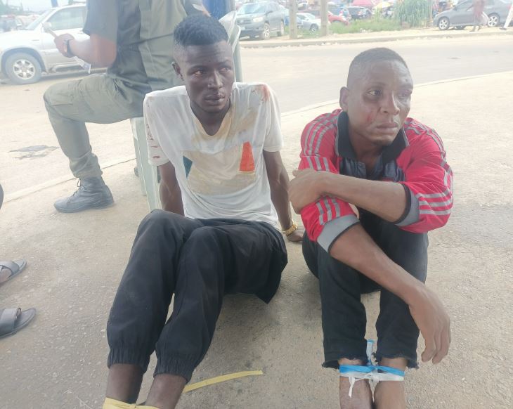 Two suspected armed robbers have been arrested by men of the Bayelsa State Vigilante services over a robbery attempt on a trader inside the popular Swali Market area of Yenagoa, the state capital.