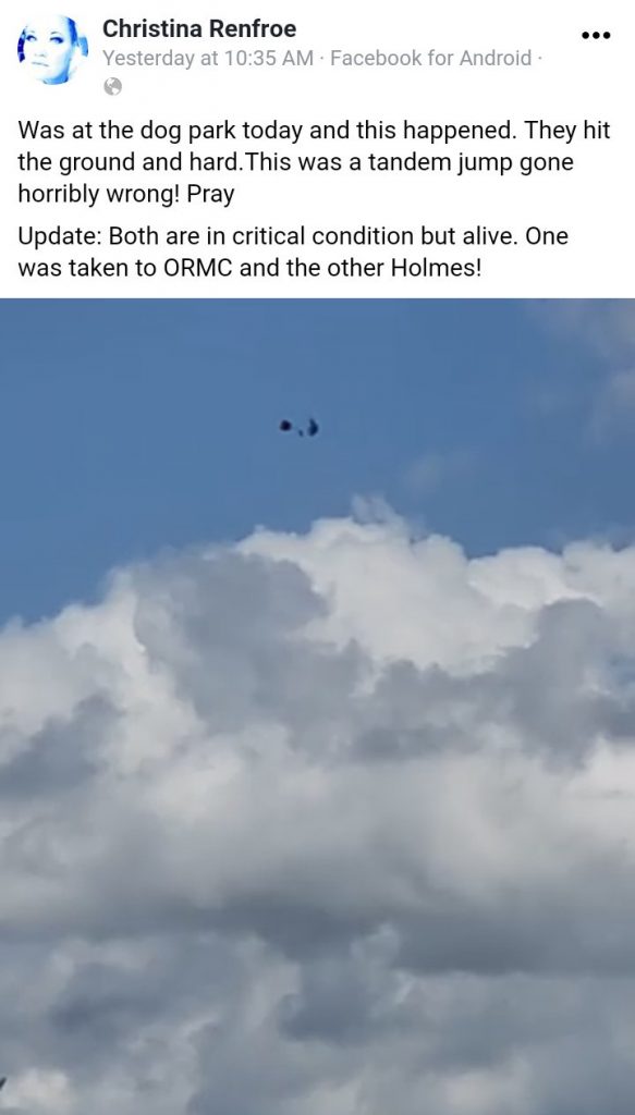 She later gave an update, explaining that both skydivers survived but are in critical condition.