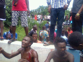 These two men alleged to be ritualists, were apprehended at Otokutu bridge, Ughelli South local govt area of Delta State today August 20th. Residents of the community found them with human parts. They have been handed over to the police. Another photo after the cut…