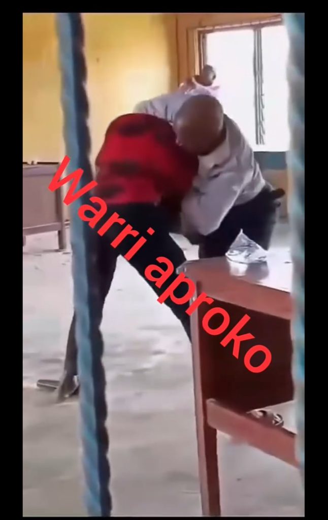 Two teachers in Ibru College, Agbarah-Otor in Ughelli-North Local Government Area of Delta State fought dirty in the staffroom yesterday Wednesday, 5th March, while students and other teachers watched and mocked them. What a shameful act for two grown men from a supposed respectable profession, embarrassing themselves publicly in the presence of their students!