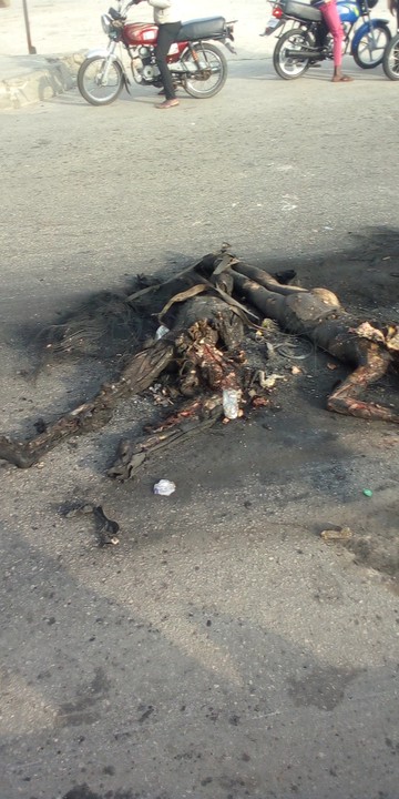 Two thieves who specialised on robbing people of their properties at night along Lagos -Apapa express way with the aid of bike were burnt to death on the night of Tuesday 13th July 2021.The scene was so gory