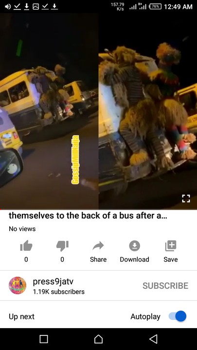 Two tired gods(masquerades) spotted attaching themselves to the back of a bus after a long day of hustle in Enugu!!! Body no be firewood oooo.