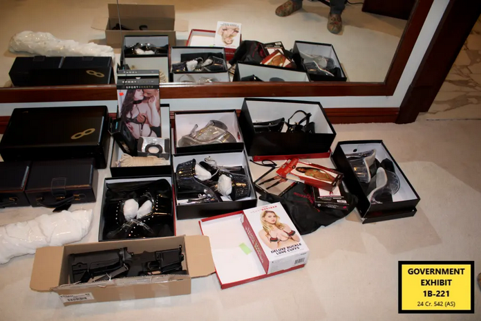 The jurors were presented with photos of AR-15 rifle parts, bottles of baby oil, lube, 7-inch high heels, and more items that were found during the raid of the rap mogul’s Miami Beach mansion in 2024.