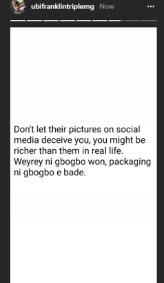 Music manager and event planner, Ubi Frankline gave a nosy lady a piece of his tongue after she audaciously tried to counsel him on Instagram.