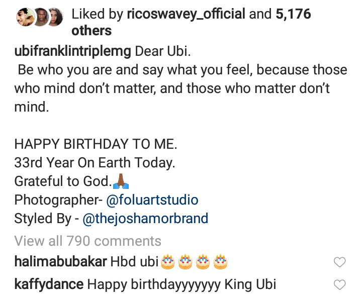 Famous record label boss Ubi Franklin celebrates 33rd birthday as he shares cute photo on his page recently.