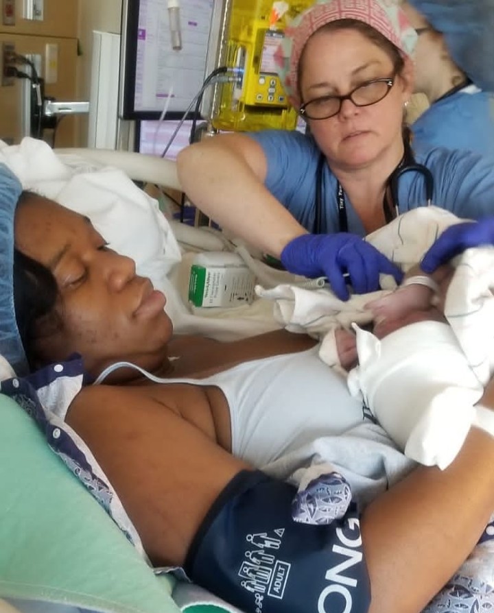 Sandra Iheuwa who shared a photo of herself holding her new born baby wrote;