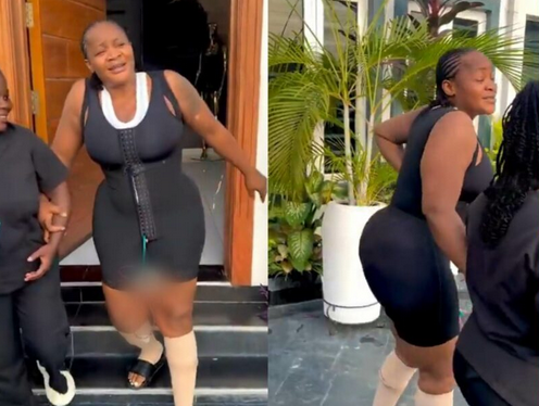 Notable actress, Uche Ogbodo shares a video capturing her recovery phase after undergoing a BBL surgery.