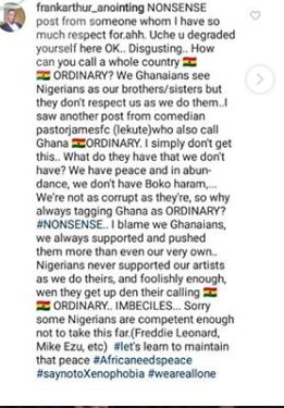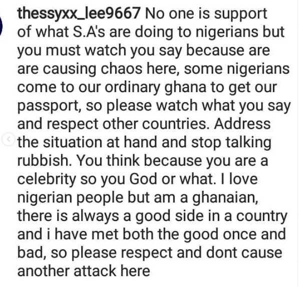 The mother of one had described the attacks as inhumane and also called for a retaliation. She further roped in “ordinary” Ghana into her rant of countries that spring up fights against Nigeria with no ‘equal response’.