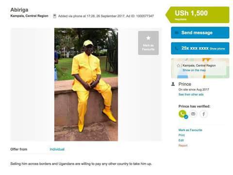 Honourable Ibrahim Abiriga, a famous member of the Ugada’s Parliament has been put up for sale on OLX and he is affordable…lol.The Arua Municipality representative was spotted days ago urinating on the wall fence of Ministry of Finance building.