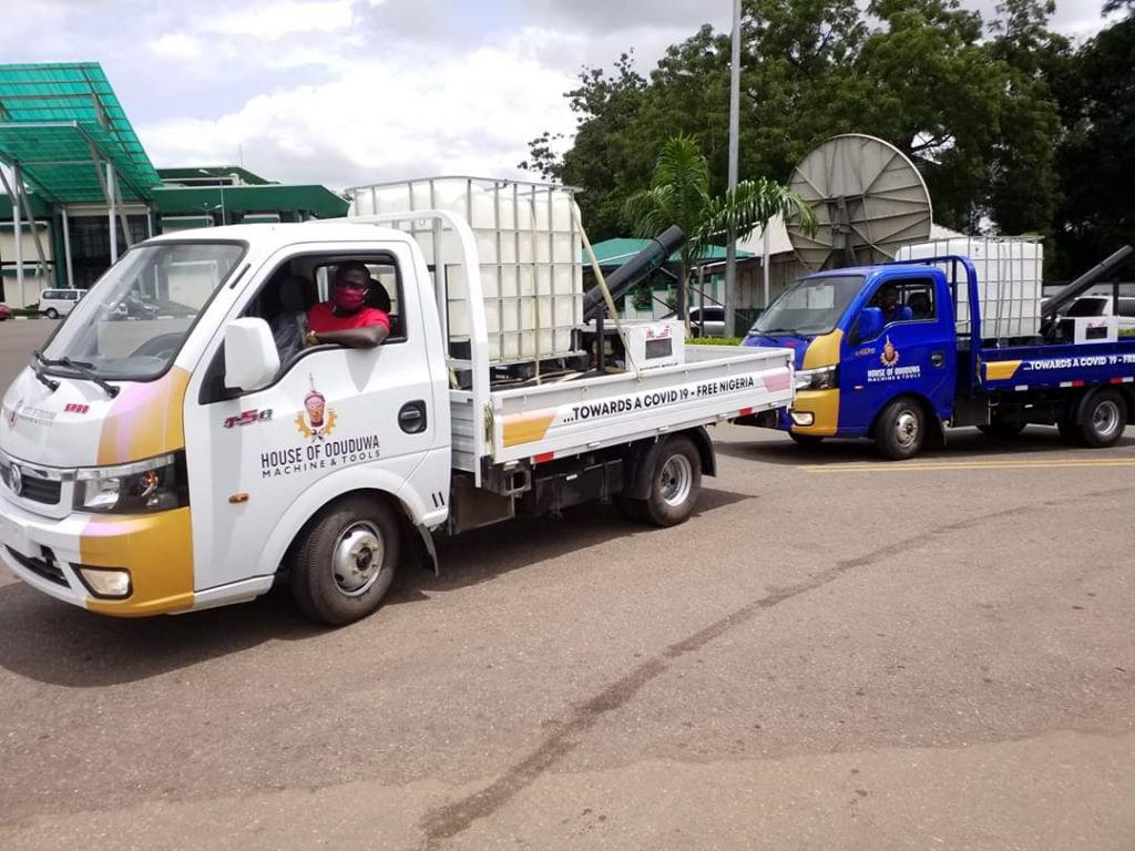 While emphasizing the importance “to disinfect our environments”, Princess Fadojutimi explained that the modular motorized fumigator “has a droplet that kills germs or virus”.