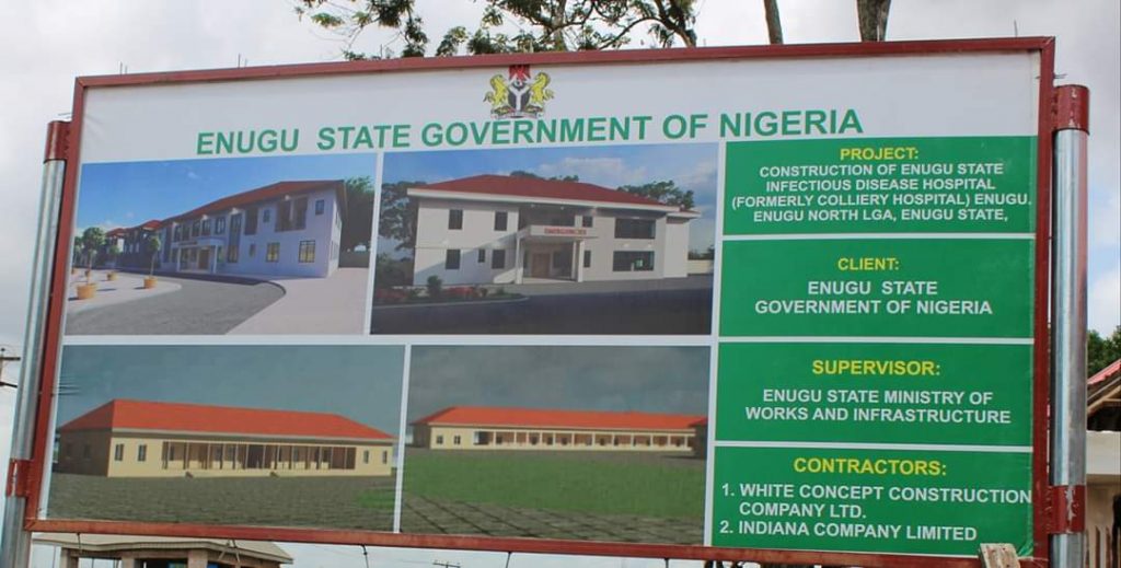 He also inspected the ongoing massive reconstruction of the Colliery Hospital Enugu and construction of new structures at the hospital, now designated as an Infectious Disease Isolation and Treatment Centre.
