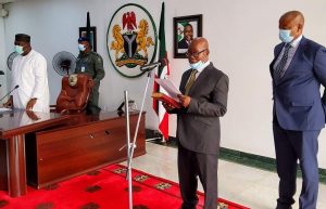Following the retirement of Hon. Justice Ngozi Priscilla Emehelu, the immediate past Chief Judge of Enugu State, from the service of the State Judiciary on September 7, 2021, Governor Ifeanyi Ugwuanyi on Wednesday swore in Hon. Justice Afojulu Raymond Ozoemena as the acting Chief Judge.