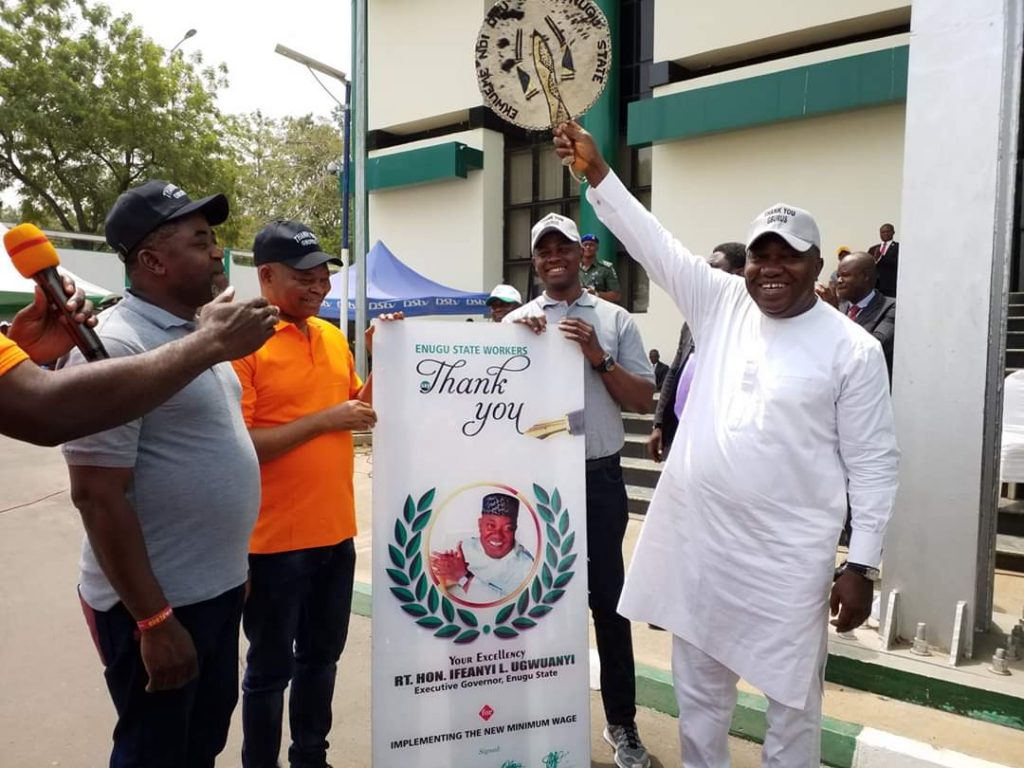 Responding, Gov. Ugwuanyi thanked the state workers for their support, solidarity and appreciation in respect of the implementation of the new minimum wage in the state.