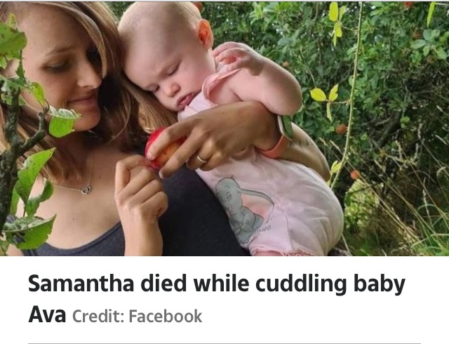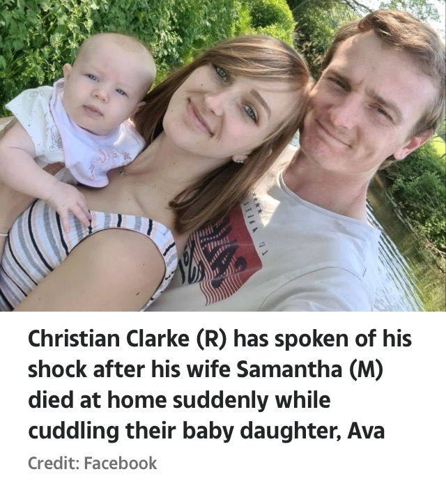 Her husband Christian, 28, discovered his childhood sweetheart Samantha unresponsive after being woken by baby Ava crying.