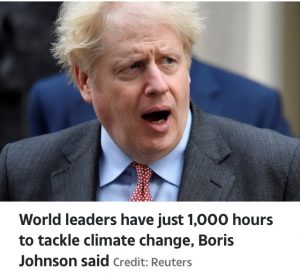 World leaders have just 1,000 hours to tackle climate change, Boris Johnson said.