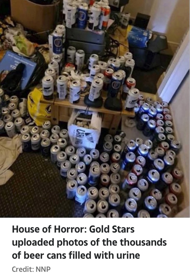 Gold Stars Haulage Removals were drafted in to clear up the flat in South Tyneside when they discovered it was bursting to the brim with urine filled beer tins in every room.