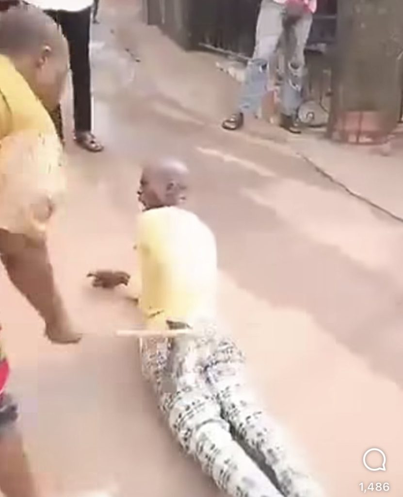 A man identified as Sunny Uma Okwara, was flo0ged by the Umuada, for allegedly assaulting his aged parents in Abia State.