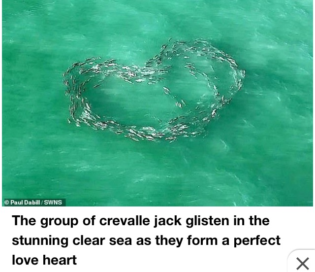This is the moment hundreds of fish formed a swirling heart shape in the ocean off Palm Beach County, Florida.