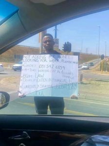 He held a placard which indicated that he was a Financial Management graduate and he also has a qualification in BCom Law.