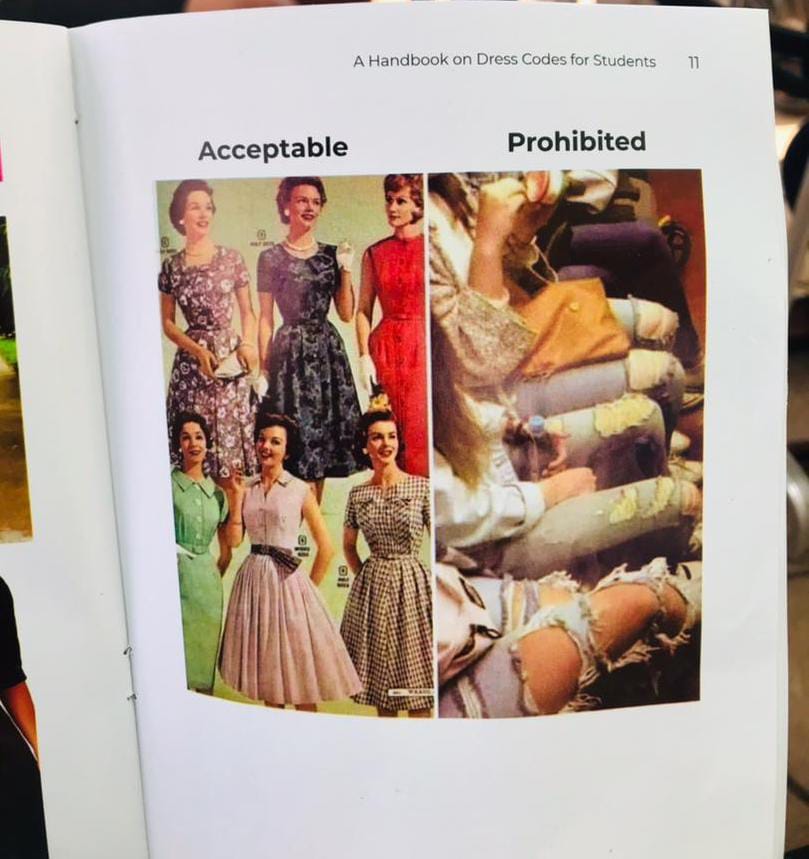 The book titled, ‘A Handbook on Dress Codes For Students’, listed all the prohibited and the acceptable dresses for both the male and female students of the school.
