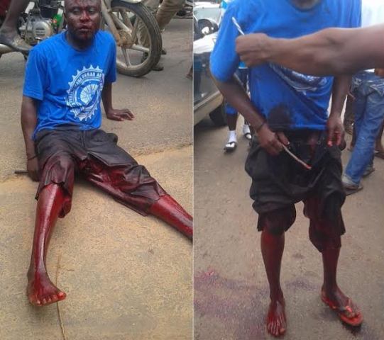 “The man fell right before the taxi, we were shocked. Later on, we discovered that too much blood was leaking from his trouser, and when he opened his trouser, we saw that his penis was cut. When we asked him to explain what happened to him, all he could say was: “It is hard to talk my people” . He left crying in severe pains until an ambulance came and took him away”