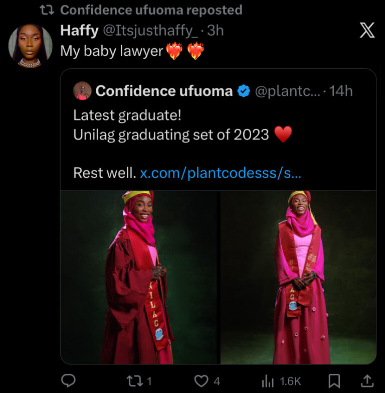 The graduate was reportedly part of the University of Lagos graduating set of 2023.